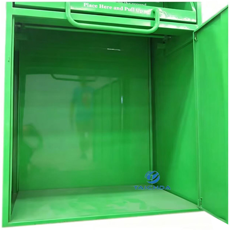 Produktabmessungen: 1200 mm × 1100 mm × 2000 mm. Recyclingbehälter für Kleidung und Schuhe. Hergestellt aus verdicktem, verzinktem Stahl, korrosions- und rostbeständig, großes Fassungsvermögen, umweltfreundlich und ästhetisch ansprechend, geeignet für Außenbereiche wie Wohngebiete, Straßen und Einkaufszentren.