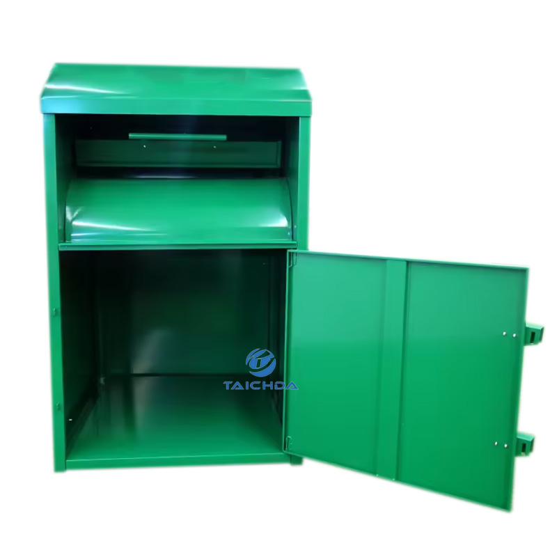Produktabmessungen: T 1100 mm × B 1100 mm × H 1820 mmKleiderspendenboxen aus verzinktem Stahl sind rostfrei und korrosionsbeständig und eignen sich für öffentliche Außenbereiche wie Wohngebiete, Straßen, Schulen, Einkaufszentren usw.