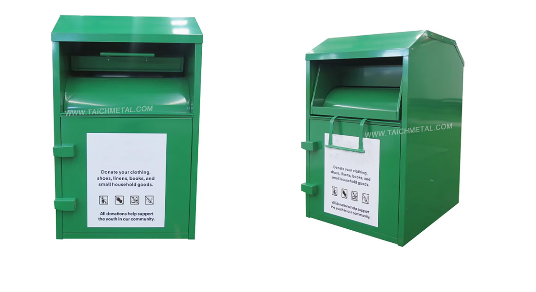 Wir, Zhangzhou Taichengda Metal Products Co., Ltd., sind ein Hersteller von Blechbearbeitungsprodukten. Wir verfügen über langjährige Erfahrung in der Produktfertigung und starke Kompetenzen in der kundenspezifischen Entwicklung. Wir fertigen und individualisieren Textilrecyclingboxen und umweltfreundliche Spendenboxen in verschiedenen Ausführungen und Größen nach Kundenwunsch.
