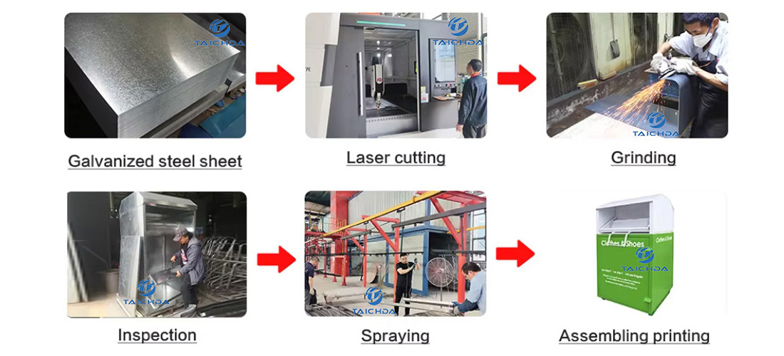 Wir, Zhangzhou Taichengda Metal Products Co., Ltd., sind ein Hersteller von Blechbearbeitungsprodukten. Wir verfügen über langjährige Erfahrung in der Produktfertigung und starke Kompetenzen in der kundenspezifischen Entwicklung. Wir fertigen und individualisieren Textilrecyclingboxen und umweltfreundliche Spendenboxen in verschiedenen Ausführungen und Größen nach Kundenwunsch.