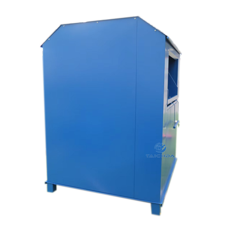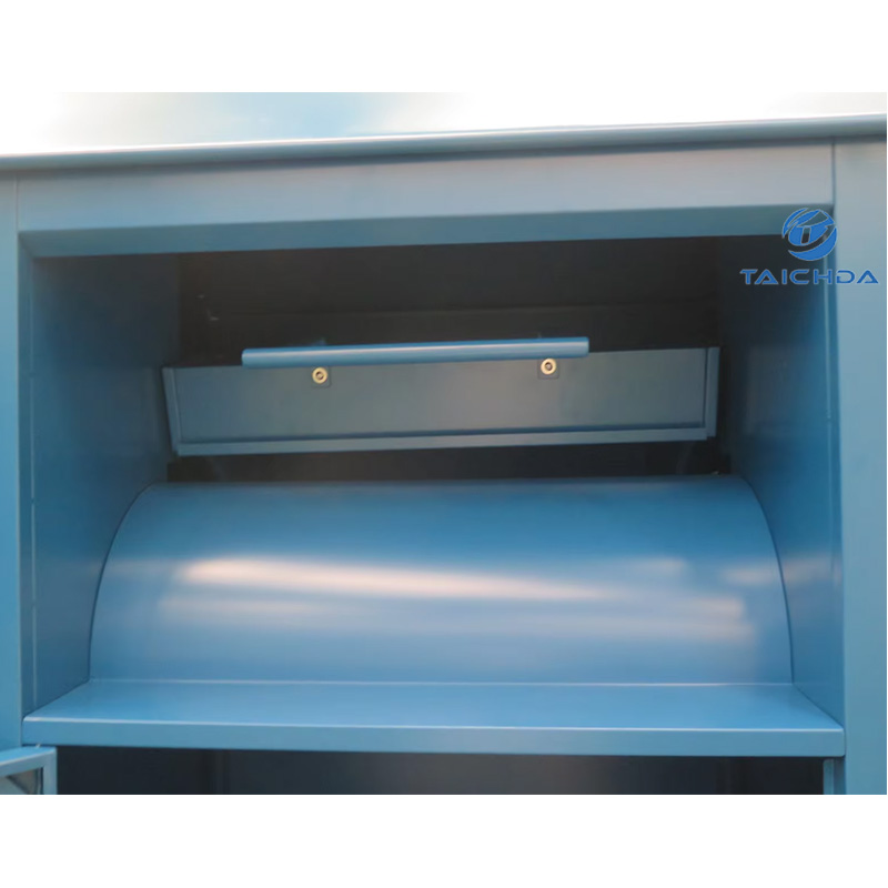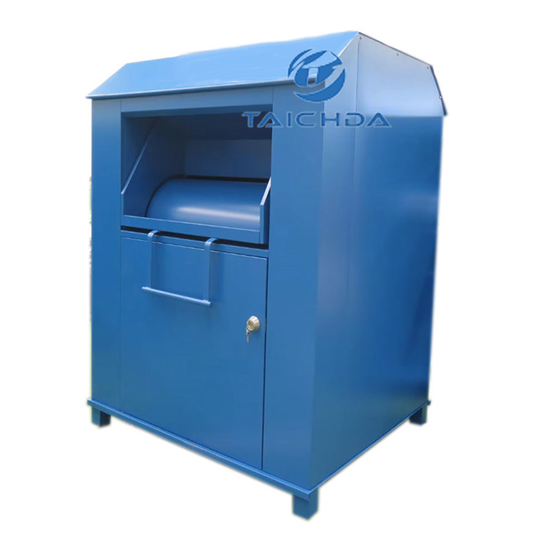 Abmessungen: 1170 mm × 1100 mm × 1800 mm; Der Altkleidercontainer aus verzinktem Stahl ist rostfrei und korrosionsbeständig und eignet sich für öffentliche Außenbereiche wie Wohngebiete, Straßen und Einkaufszentren.
